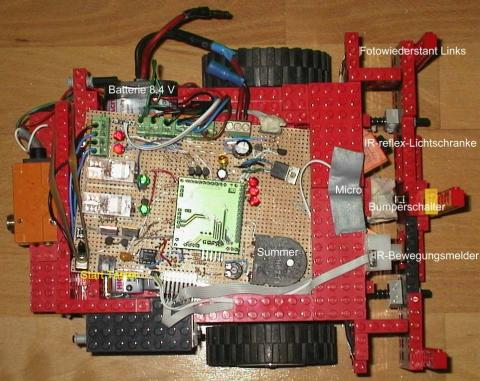 Draufsicht: man erkennt die Einzelteile des Robots.