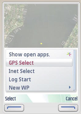 "GPS Select": Bluetooth GPS auswählen und verbinden (GPS Position wird als roter Punkt angezeigt)